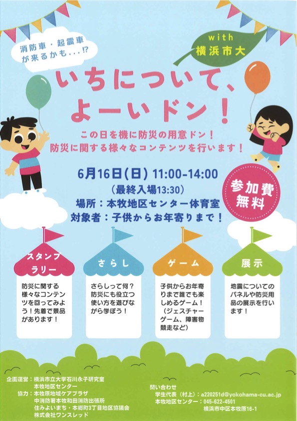 企画運営する、横浜市立大学国際教養学部都市学系石川ゼミは防災の街づくりを学んでいます。